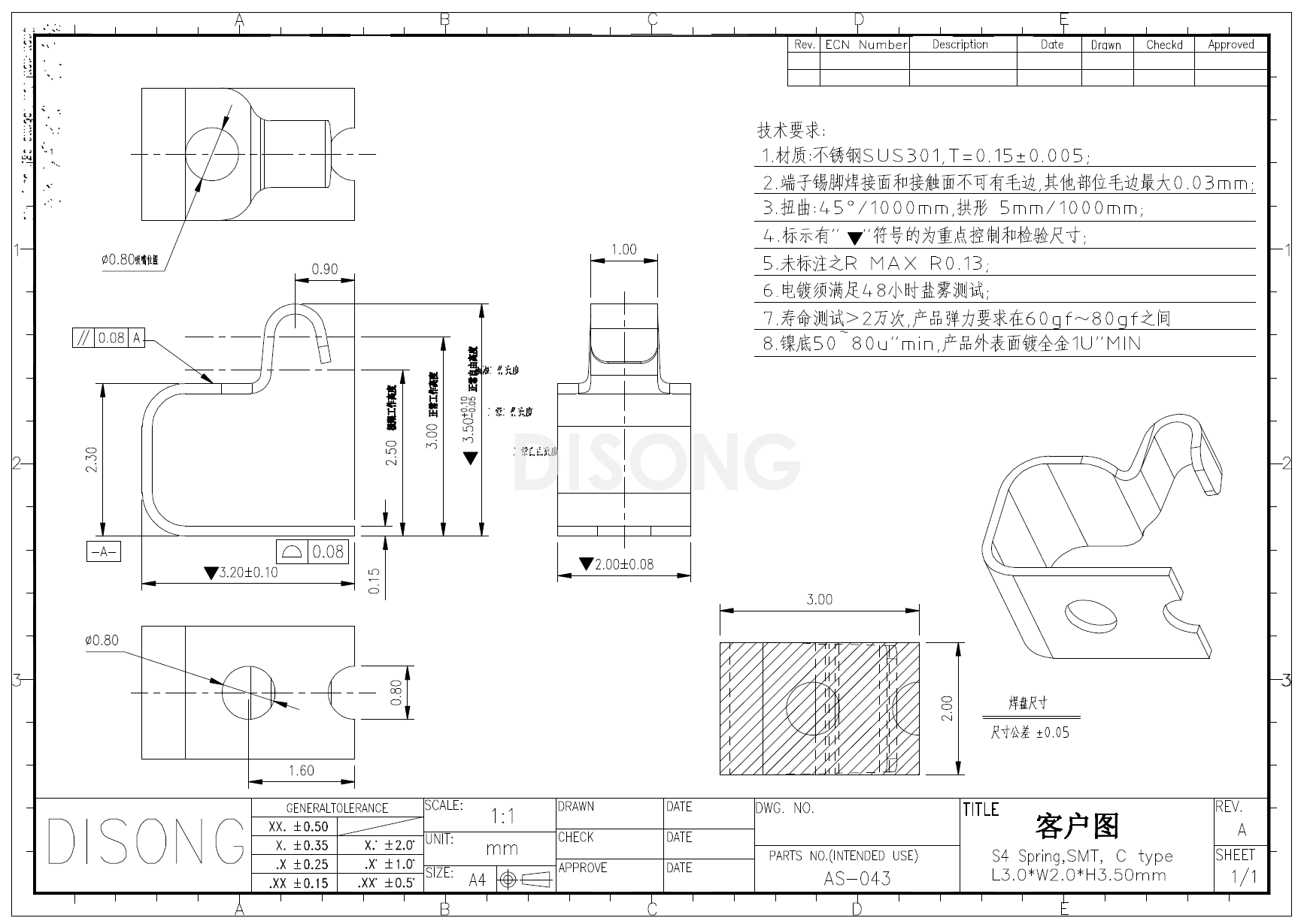 尺寸:3.2X2.0X3.5 材质:不锈钢 包装方式:卷装