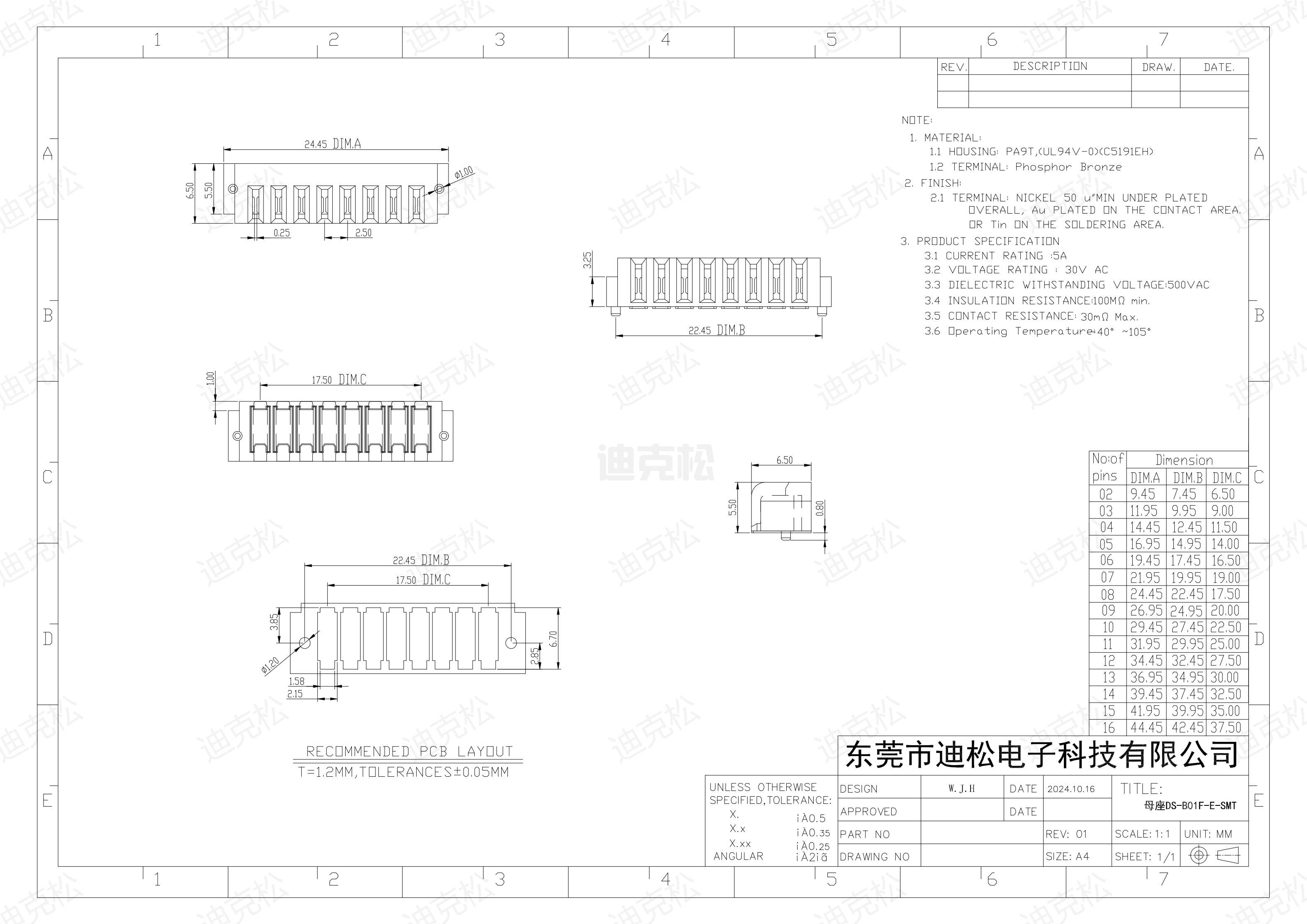 母座DS-B01F-E-2P-SMT